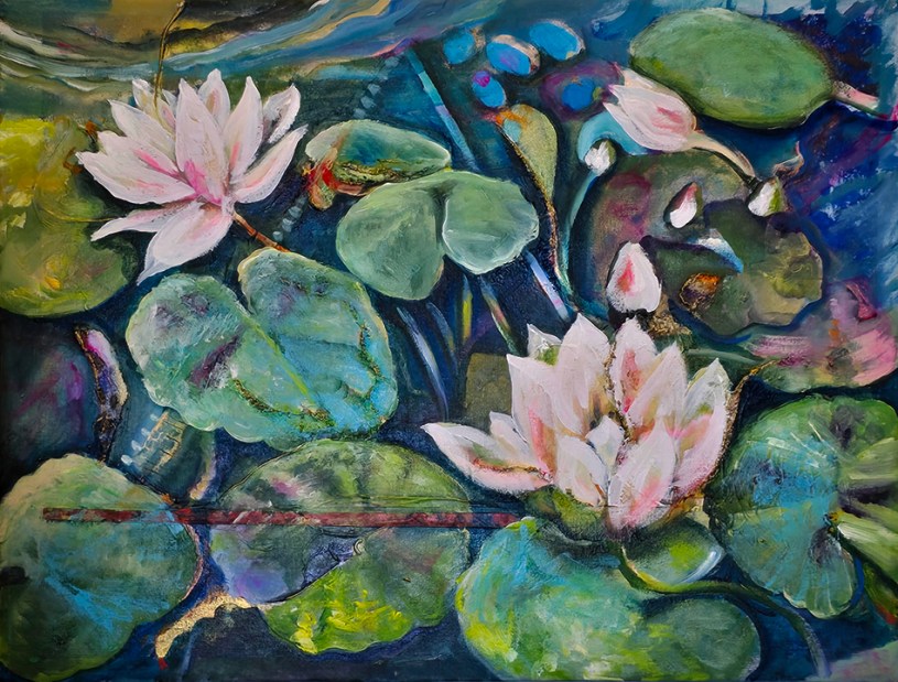 Lily Pond – 24″ x 18″ Mixed Media on Canvas – Artist Susan Krieg